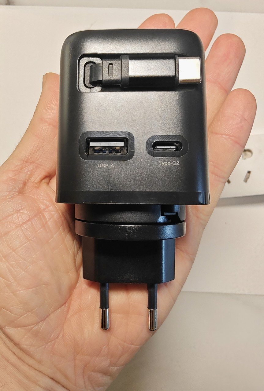 - Выдвижной встроенный кабель Type-C — удобный, фиксируется в корпусе, не нужно носить отдельно.