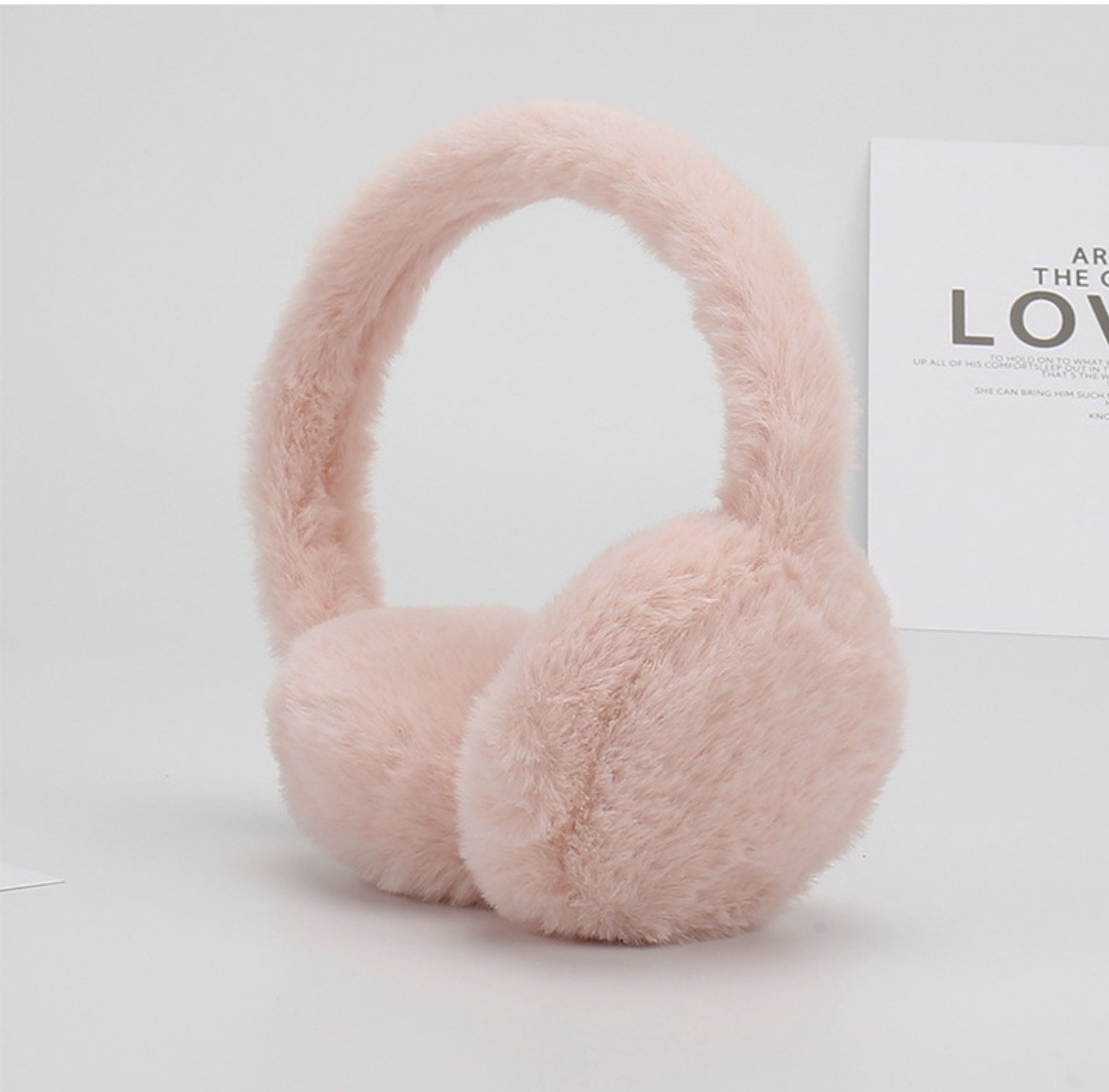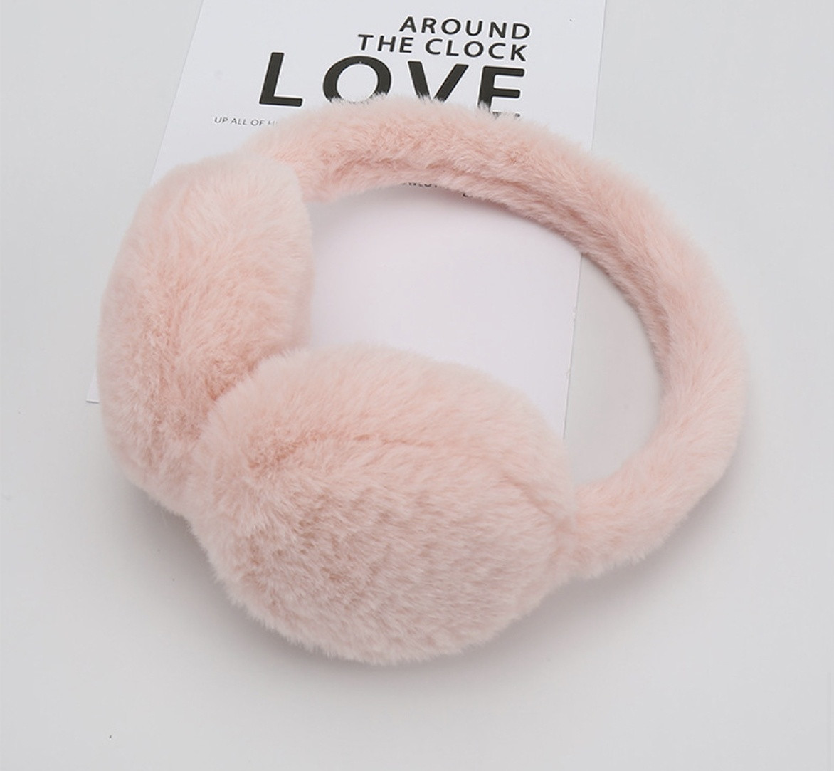 Бархатные меховые наушники / теплые наушники для девушек / зимние наушники Рожевий