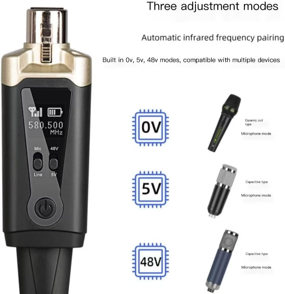 Беспроводная микрофонная система UHF, микрофонный адаптер XLR, 16 каналов, аудиопередатчик и приемник для динамического микрофона, фантомное питание 48 В для конденсаторного микрофона, совместим с аудиомикшером PA, TS2