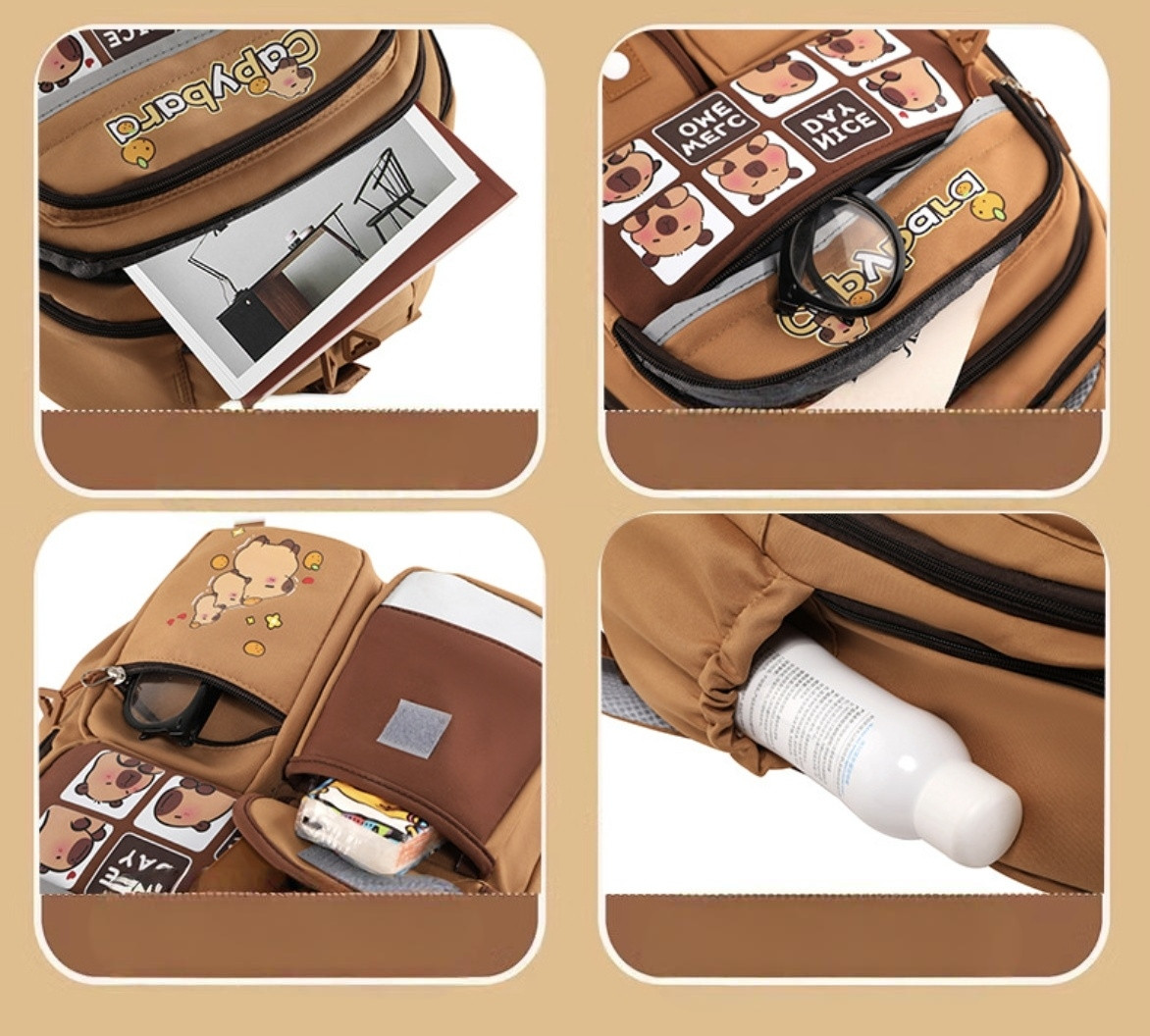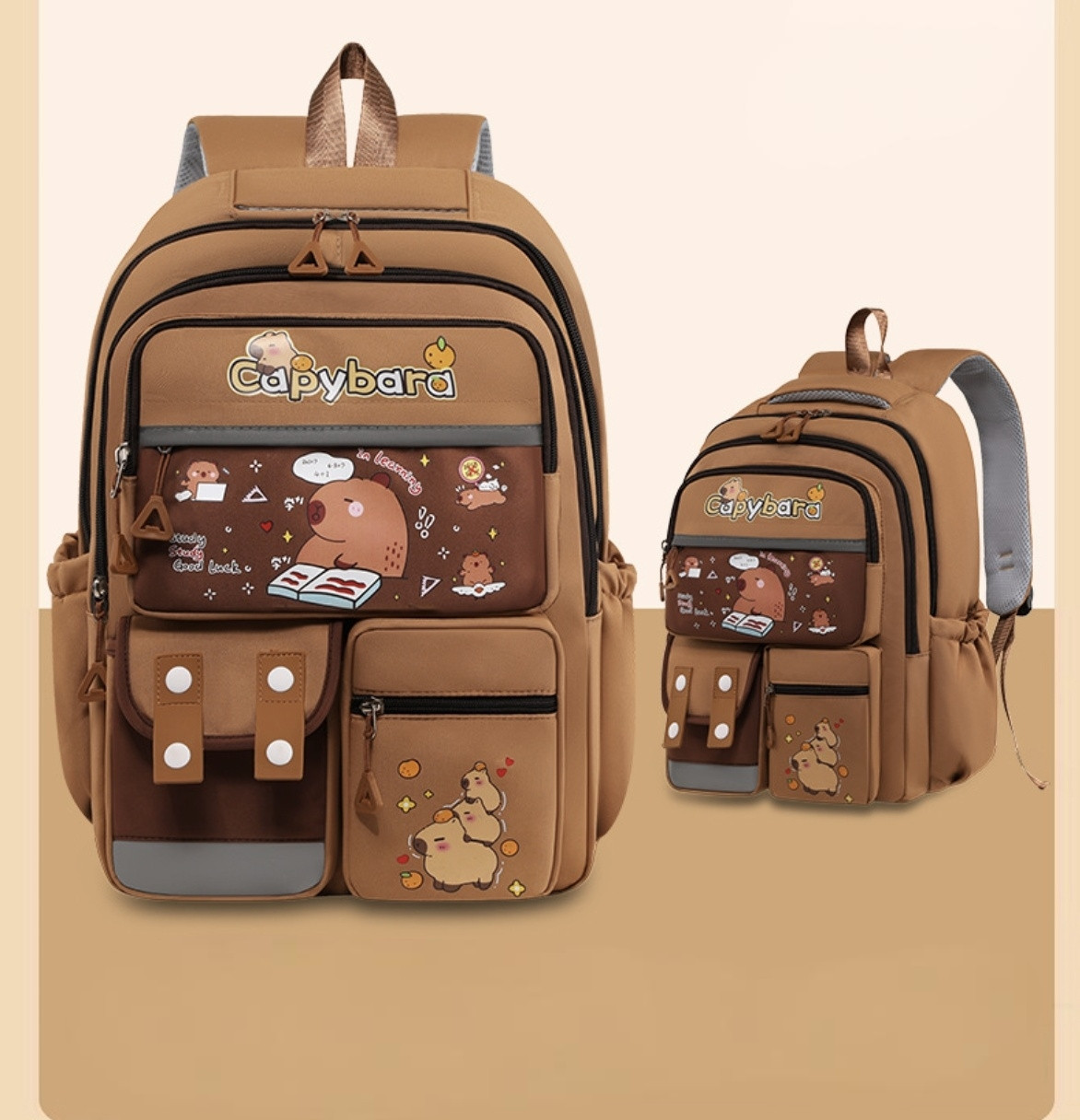 Рюкзак "Capybara" — это стильный и удобный школьный аксессуар для детей с милым дизайном. Он изготовлен из прочного водоотталкивающего материала, который надежно защищает содержимое от влаги и грязи.Оснащён удобными широкими лямками и светоотражающими полосками — они светятся в темноте при попадании света фар, обеспечивая дополнительную безопасность.