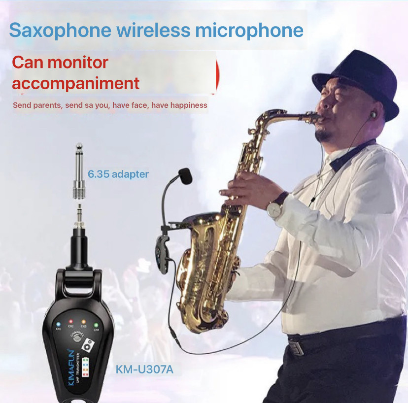 Микрофон для саксофона, инструментальный радио микрофон Kimafun KM-U307. + мониторы в уши