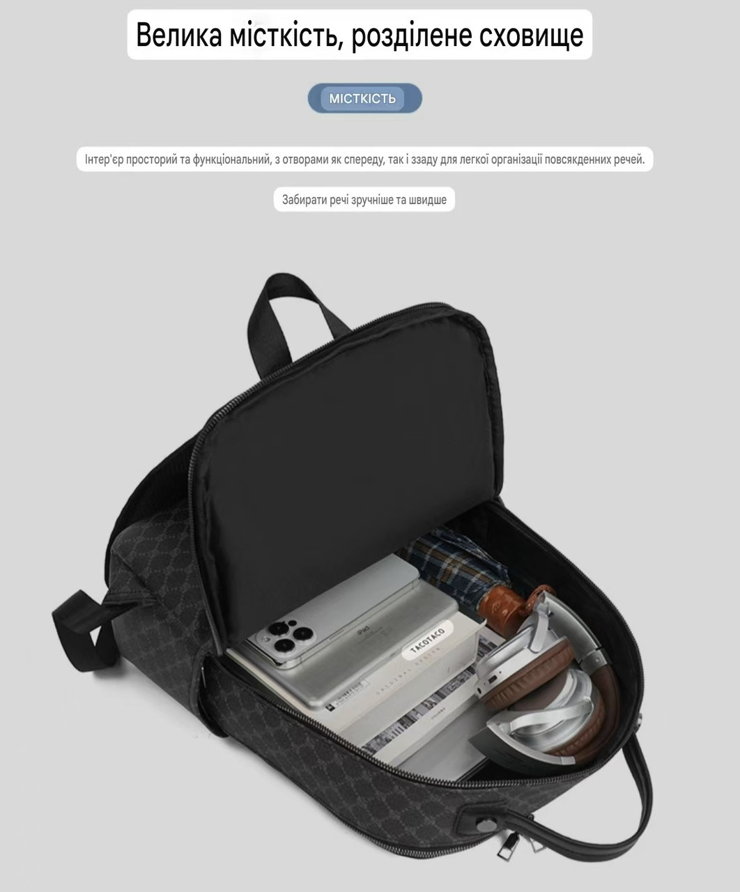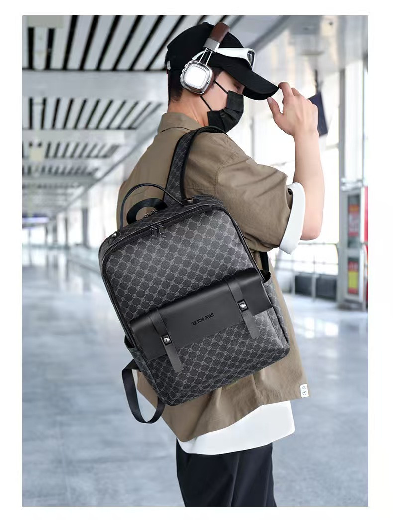 Стильный и практичный спутник для работы, поездок и повседневной жизни! Этот рюкзак сочетает элегантный дизайн в классическом геометрическом узоре (чёрный/коричневый "клетка" GG-style) с максимальной функциональностью. Идеален для бизнесменов, фрилансеров и всех, кто ценит комфорт, организацию и надёжность. Лёгкий (всего 0.68 кг), но вместительный — вмещает 15-дюймовый ноутбук, документы, гаджеты и ежедневные вещи.
