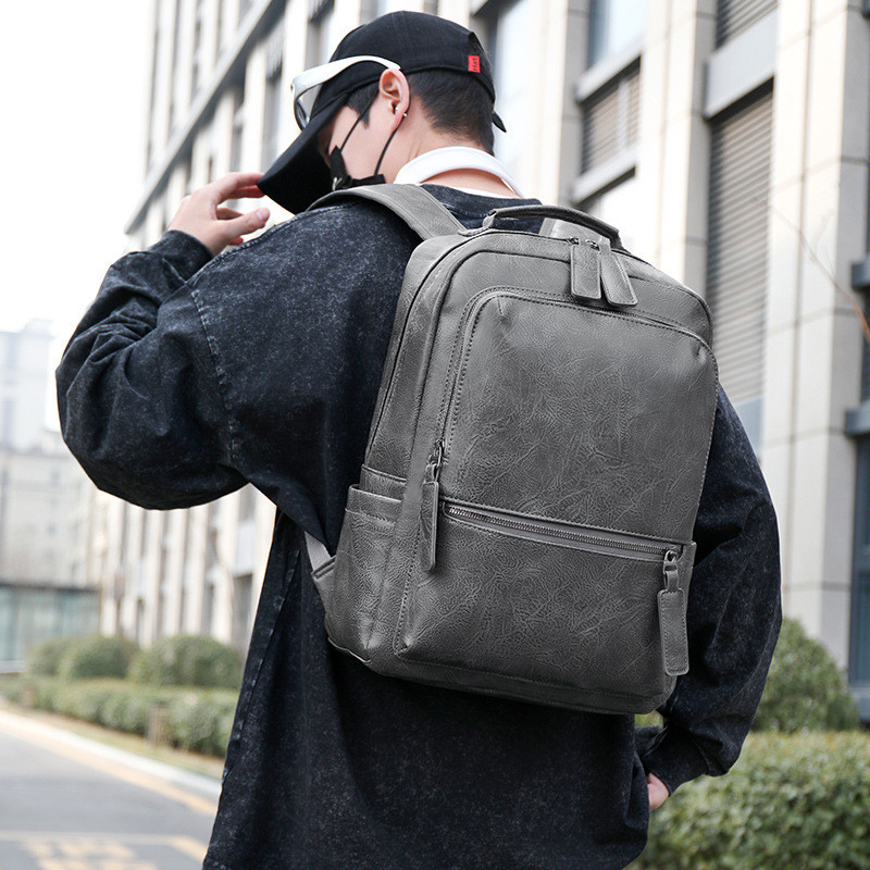 Мужской рюкзак из высококачественной экокожи, 30л — водоотталкивающий, деловой стиль (3 цвета) серый