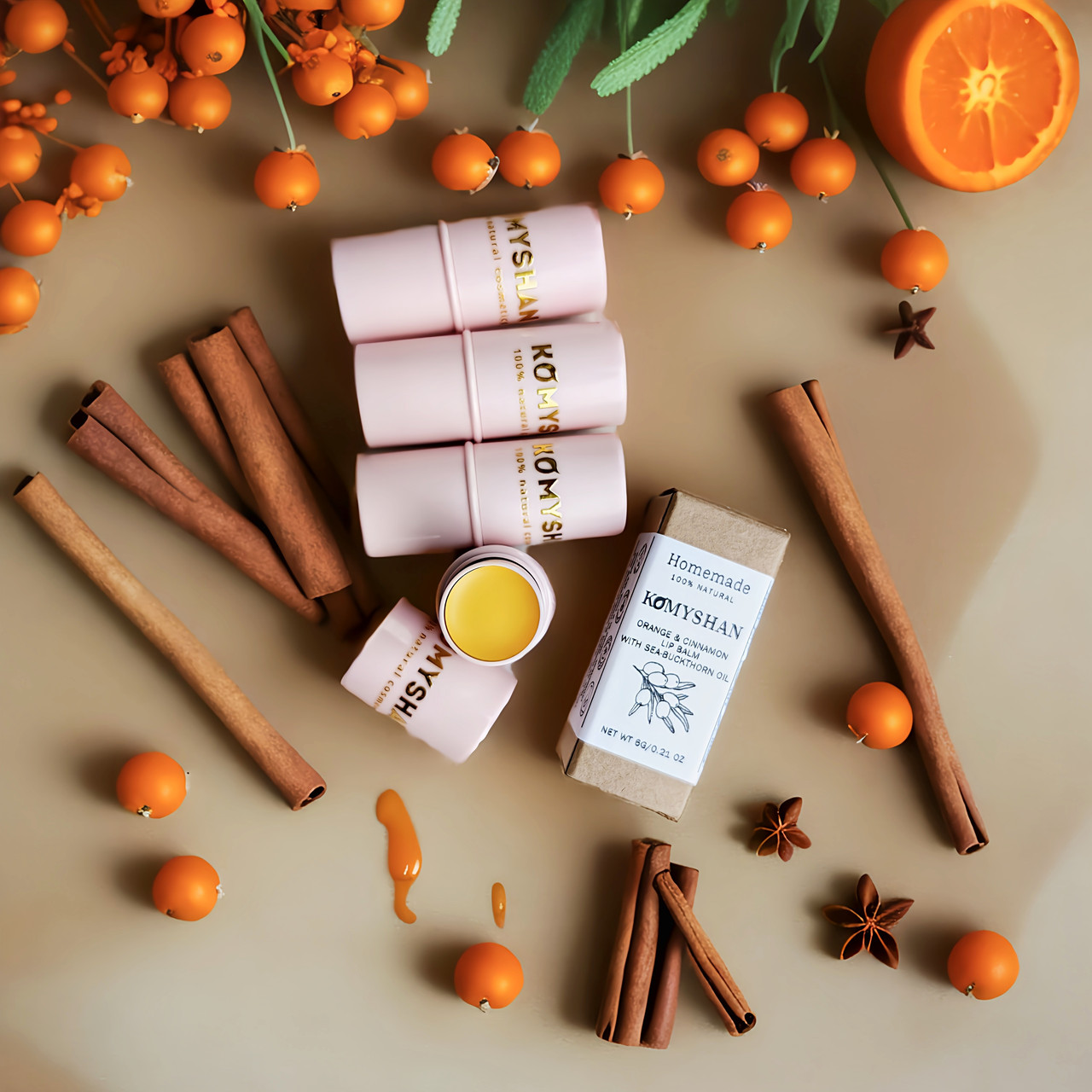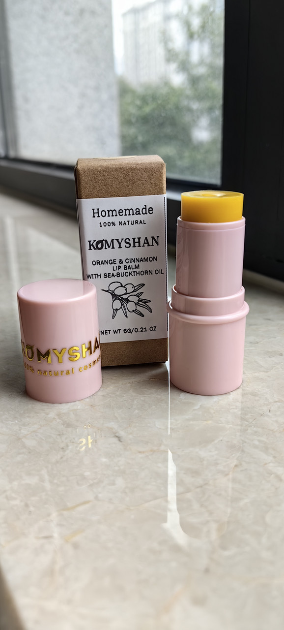 100% Натуральный бальзам для губ Komyshan "Облепиха + Апельсин+ корица