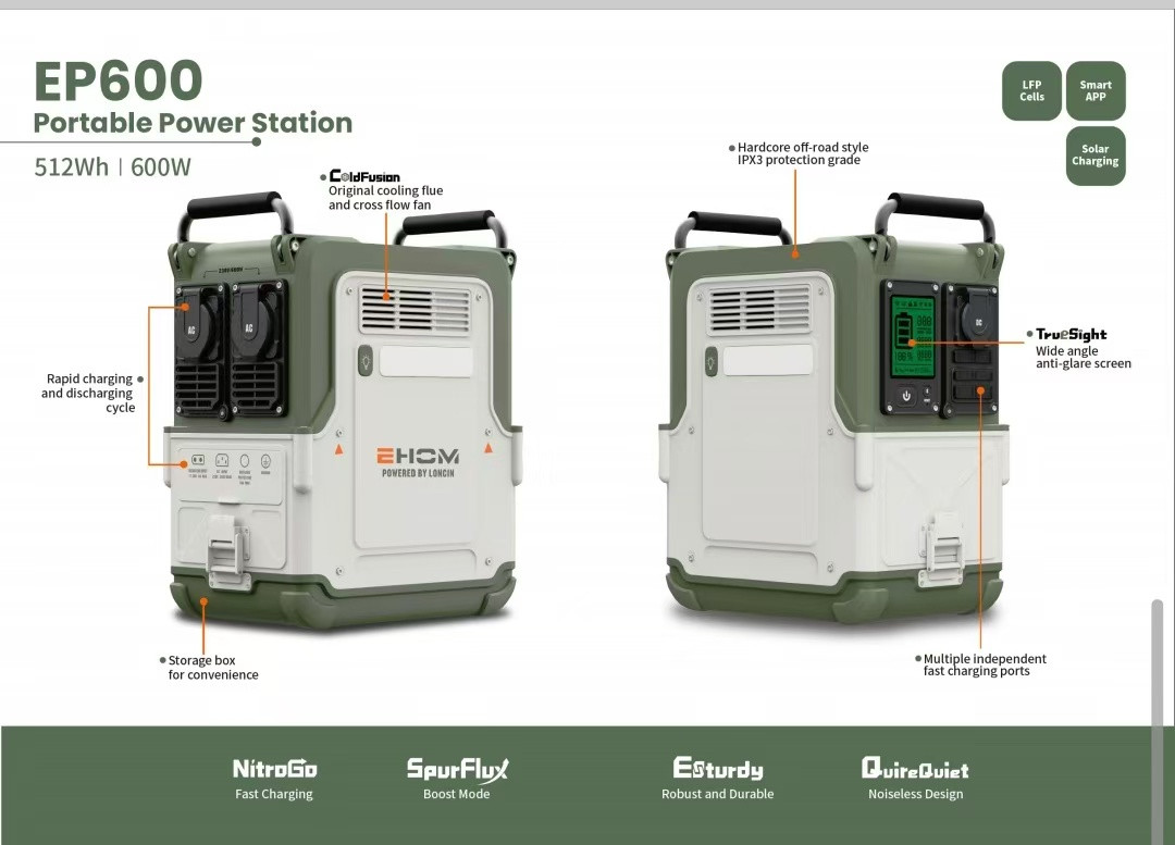 ChargerLAB ранее тестировал портативную электростанцию EP1650 от EHOM. Она хорошо зарекомендовала себя с точки зрения зарядки, разрядки и функциональности. На этот раз мы получили еще одну портативную электростанцию EP600 также от EHOM. Емкость ее аккумулятора составляет 512 Вт·ч. Номинальная выходная мощность составляет 600 Вт. Она также использует аккумулятор LFP и двунаправленный инвертор. Она оснащена технологией SpurFlux и может заряжать десять устройств одновременно.