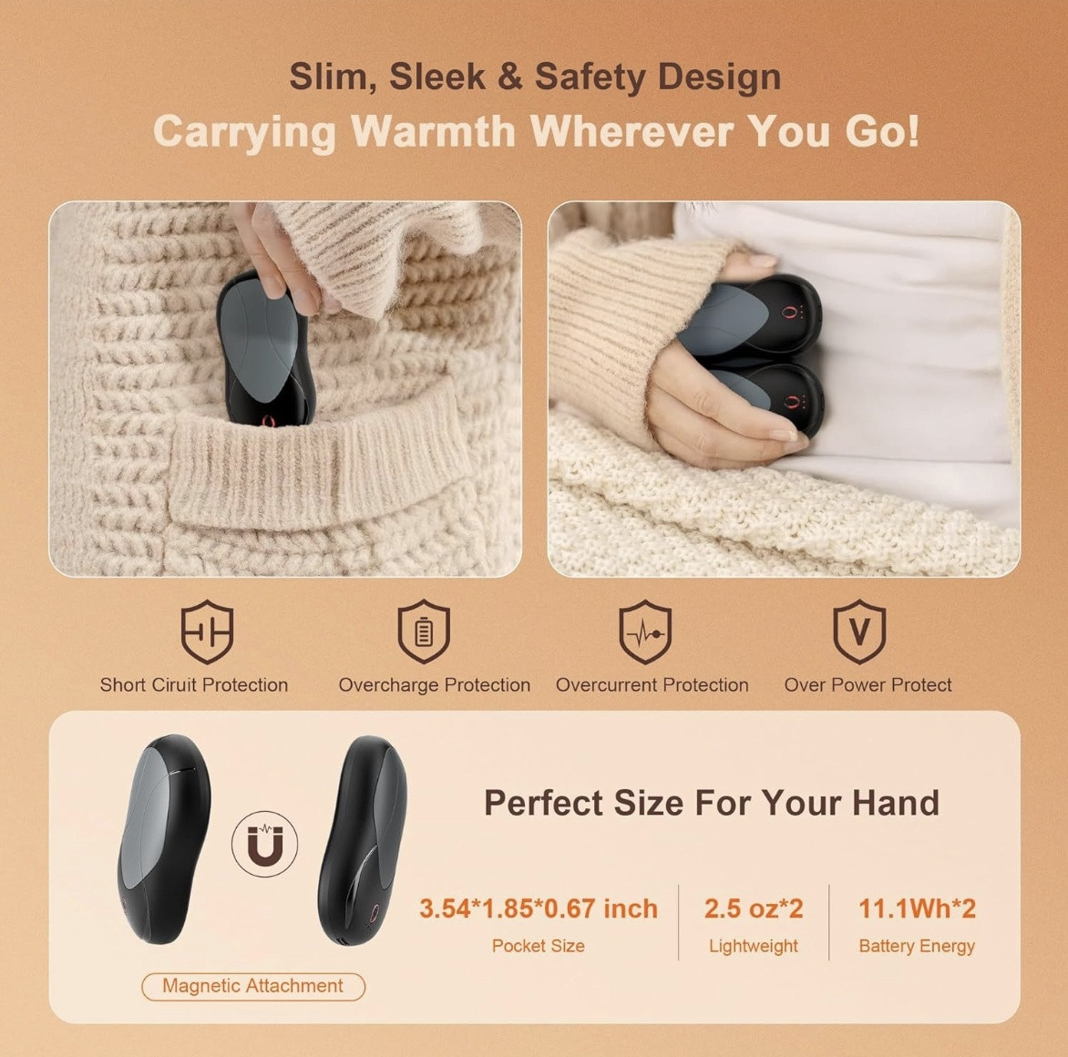 Компактная перезаряжаемая грелка для рук (2 шт) — идеальный гаджет для тепла в холодное время! Магнитный дизайн позволяет использовать вместе (как один большой) или отдельно.