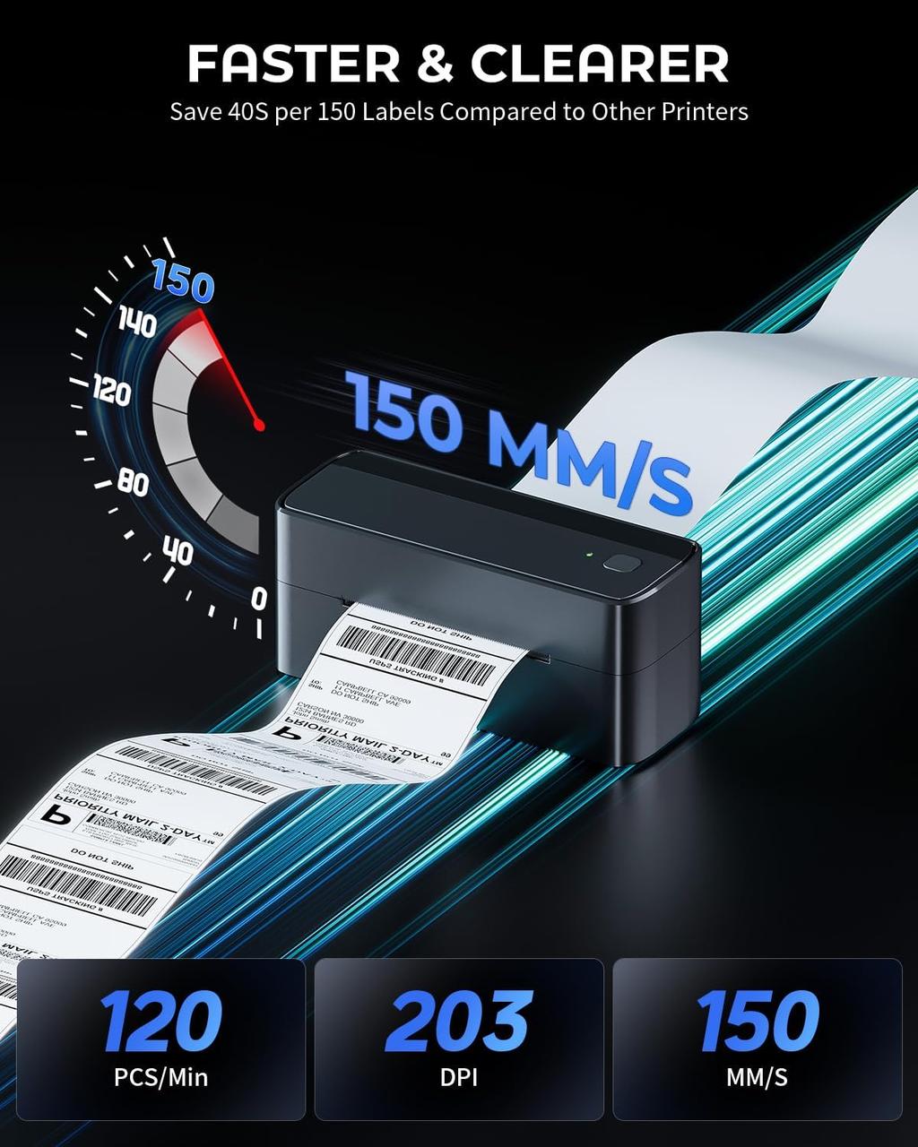【УНИВЕРСАЛЬНОСТЬ】Поддерживает ширину этикеток от 1 до 4,6 дюймов. Идеальный принтер для этикеток для доставки для малого бизнеса, совместимый с USPS, Shopify, UPS, Etsy, eBay, Amazon и другими