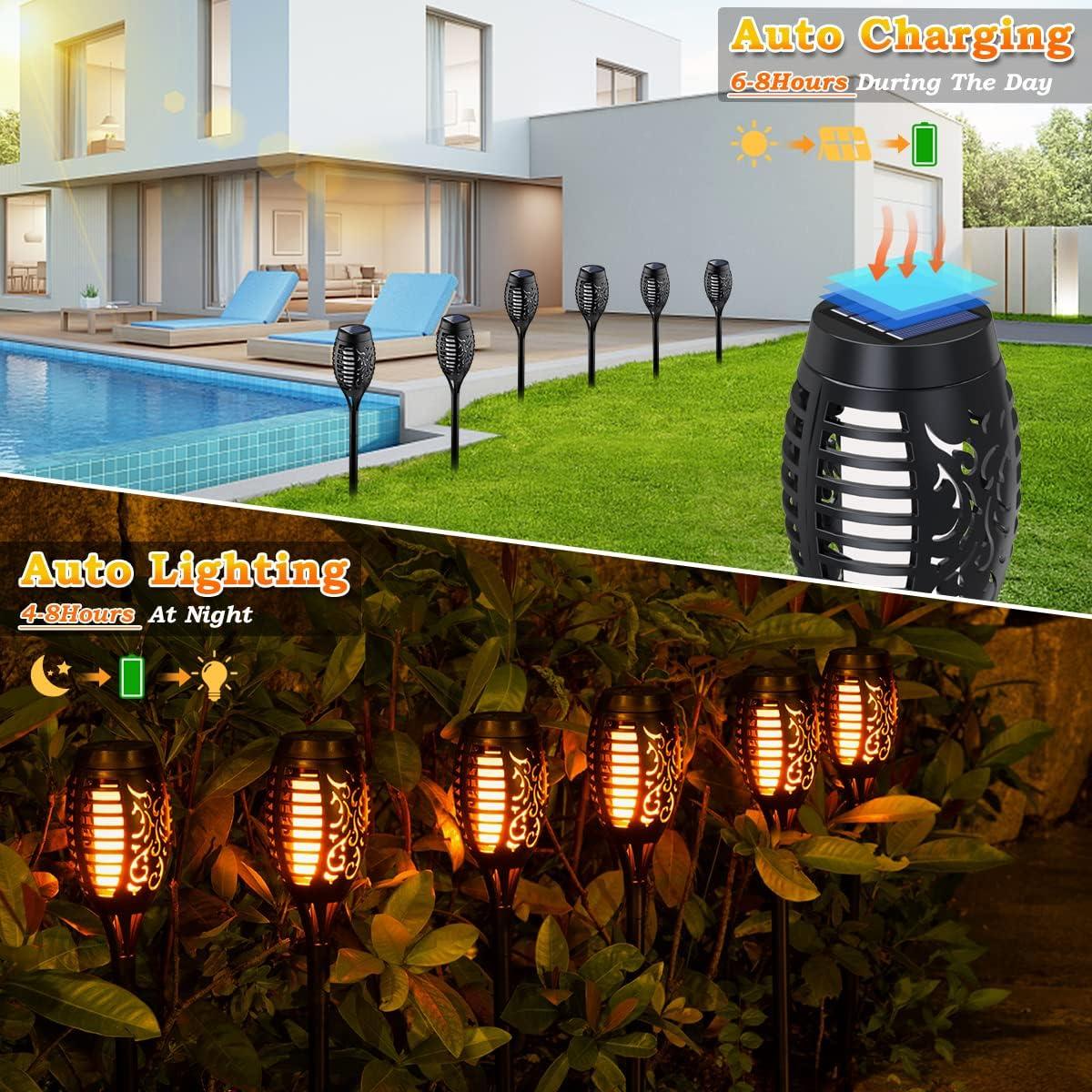 Факелы можно быстро разместить в любом месте вашего сада. Никаких проблем с монтажом, просто воткните фонарь в землю. В течение дня заряжается от встроенной солнечной панели. Автоматически включается с заходом солнца, словно пламя оживает в красивой резной огранке. Идеально подходят для цветников, бордюров, дорожек. Такие фонари будут освещать ваш сад бесподобным мерцающим светом круглый год.