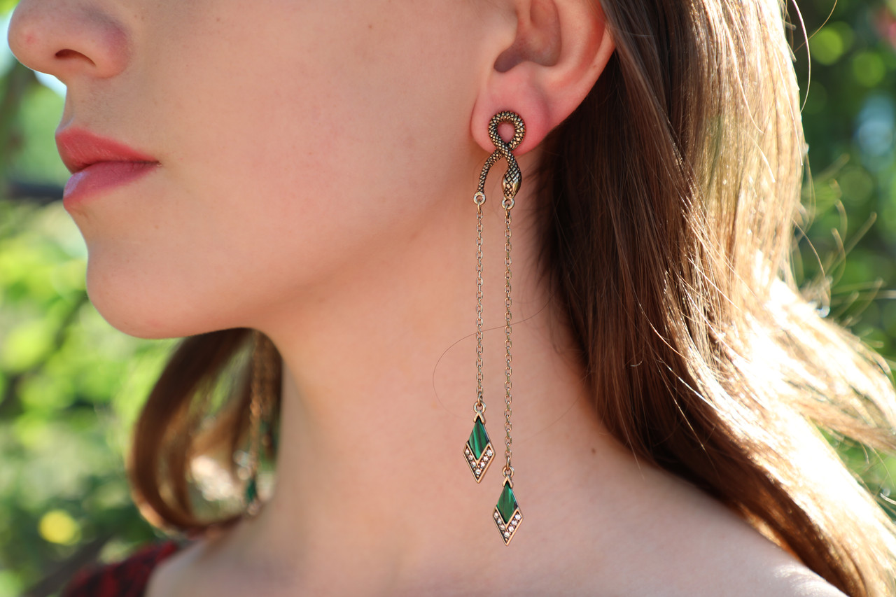 Сережки у формі змій. Сережки-змії з підвісками смарагдового кольору від бренду Empire