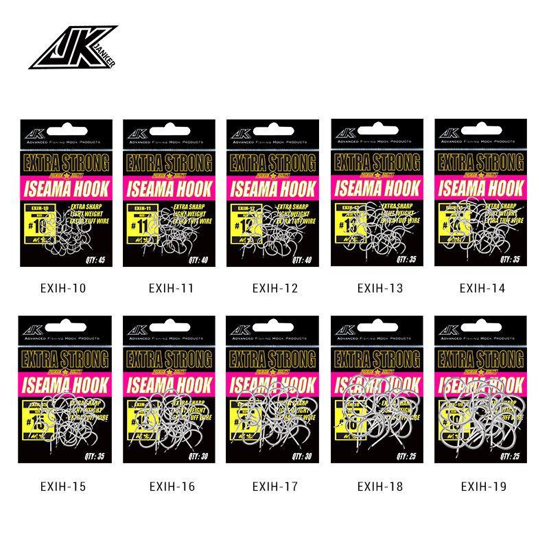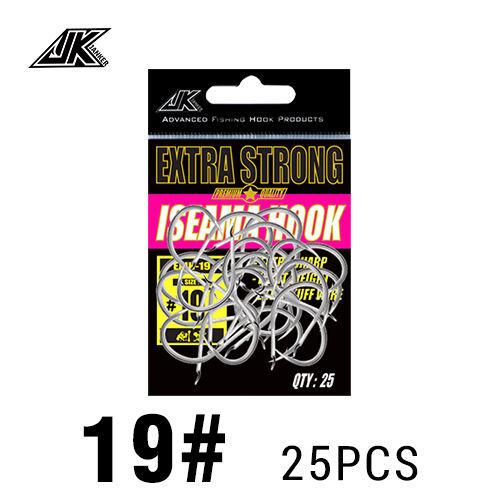 Сверхпрочные крючки ISEAMA, размеры 17#(30pcs), 18#(25pcs), 19# (25pcs ), от японского бренда JK. Отличаются высокой надежностью, острым заточенным жалом и двойной ковкой для максимальной прочности.
