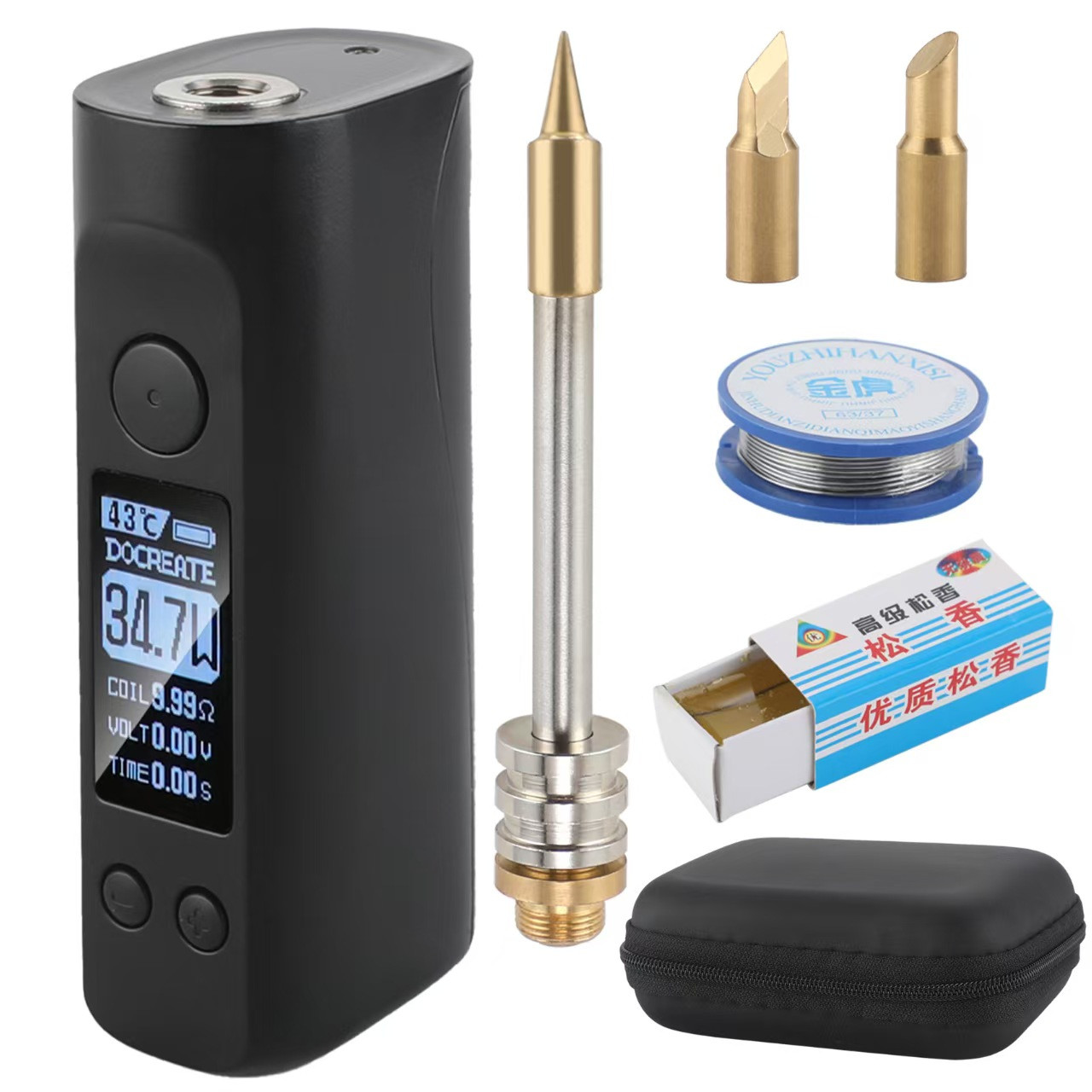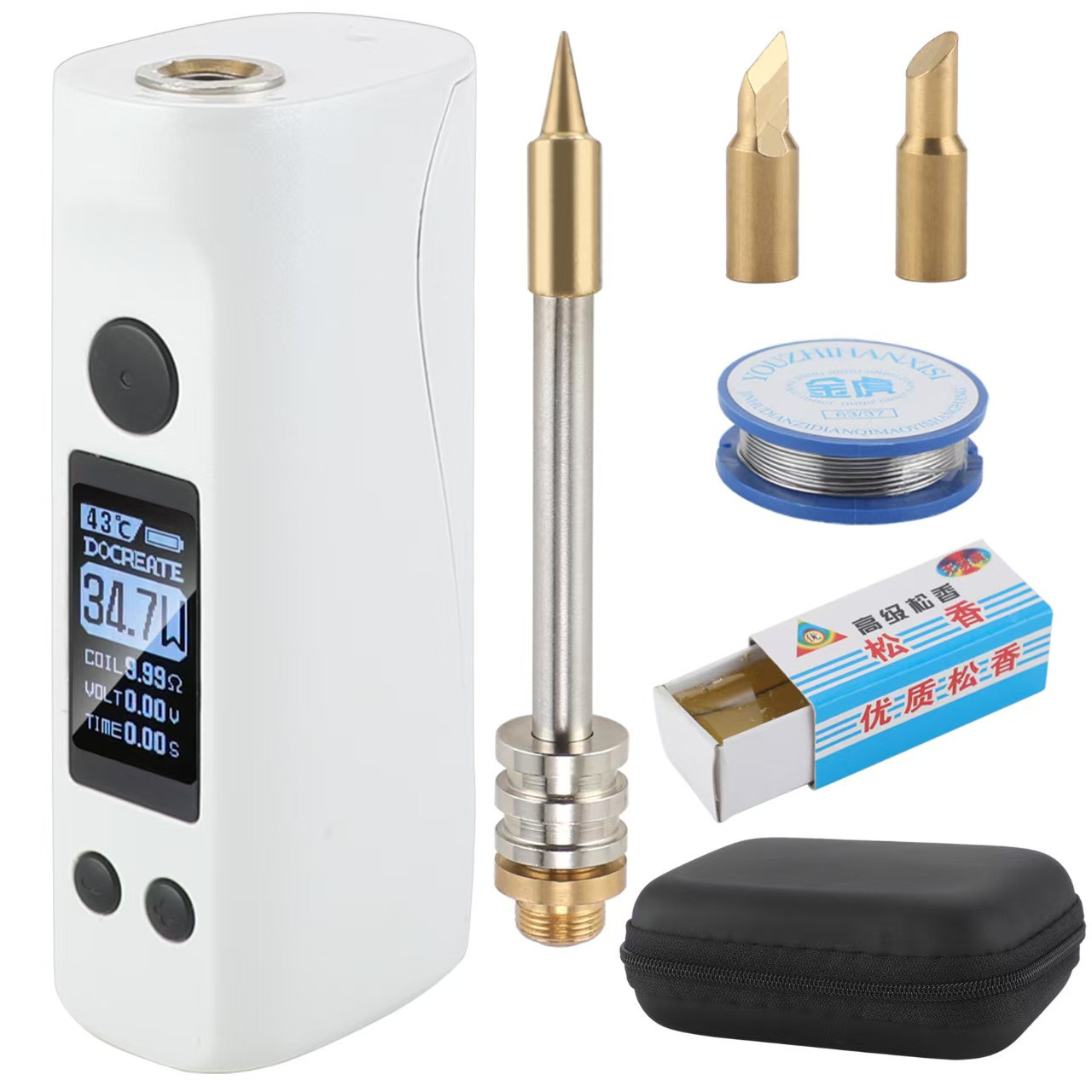 Особенности: 8 секунд плавления олова: этот электрический паяльник имеет функцию быстрого нагрева, которая может достичь температуры плавления олова всего за 8 секунд, экономя время ожидания и повышая эффективность работы. Постоянная температура и быстрый нагрев: электрический паяльник имеет функцию постоянной температуры, которая может поддерживать стабильную рабочую температуру и обеспечивать качество и стабильность сварки. Большой экранный дисплей: электрический паяльник оснащен большим экраном, который может четко отображать текущую рабочую температуру и другую сопутствующую информацию, что делает его удобным для пользователей для работы и контроля. Наконечник, подкова и головка ножа являются взаимозаменяемыми: этот электрический паяльник оснащен тремя различными формами сварочных головок, которые можно заменять в соответствии с различными потребностями сварки, что обеспечивает больший выбор и гибкость. Портативный: электрический паяльник компактен и удобен для переноски, подходит для использования на открытом воздухе или мобильных рабочих сценариев. Характеристики: Товар: Электрический паяльник Основной материал: АБС, электронные материалы Аккумулятор: 2500 мАч Диапазон температур: 200-500 ℃ Поддержка мощности: 5-75 Вт Входной интерфейс: Type-C Размер: Корпус: 27*37*83 мм (без сменной головки) Размер упаковки: 12,8*9,3*4,2 см Вес упаковки: 296 г Список упаковки: 1* Электрический паяльник 1* USB-кабель 1* Сумка для хранения 3* Сменные головки 1* Рулон олова