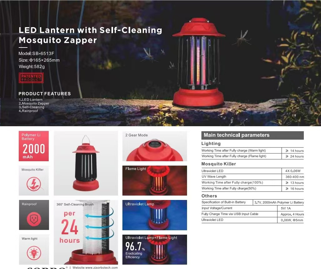 Светодиодный фонарь с самоочисткой и электрическим уничтожением комаров SB-6513F