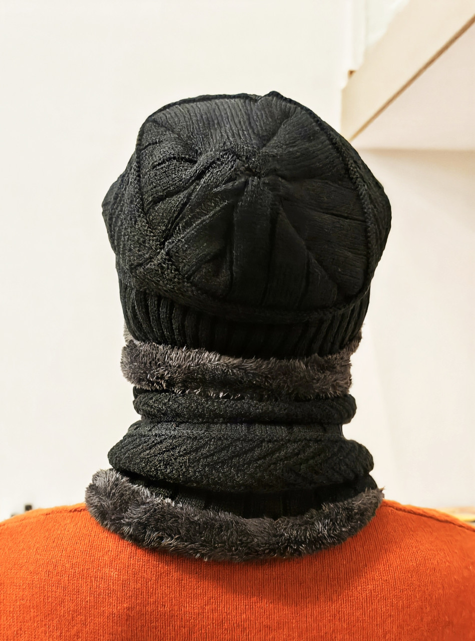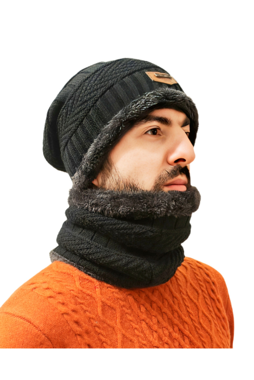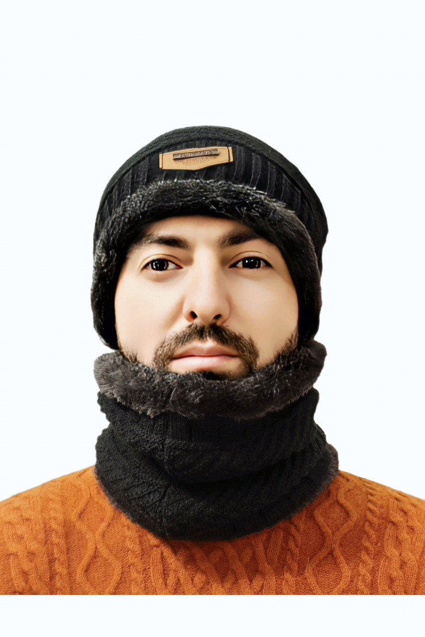 Тёплый мужской зимний комплект шапка + хомут (снуд) — практичное решение для холодной погоды.